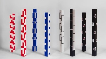 Roma Drumond. Bandeiras Azuis. 160 x 9,5 x 8 cm. Acrílica sobre tela sobre MDF. 2017 Roma Drumond. 160 x 14 x 7 cm. Acrílica sobre tela sobre MDF Roma Drumond. Colunas Parede. 160 x 20 cm. Acrílica sobre madeira Roma Drumond. Arco Vermelho. 70…